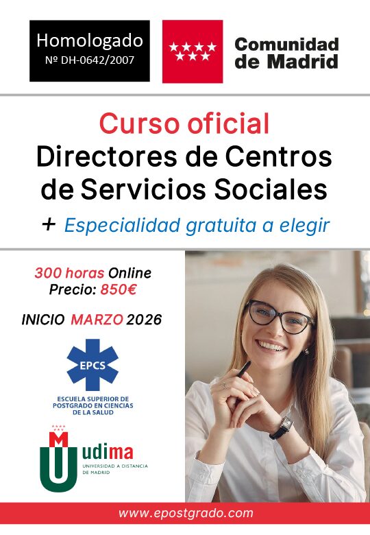 La Escuela Superior de Postgrado, es una de las entidades autorizadas para impartir formación homologada por la Administración Pública de la Comunidad Autónoma de Madrid según se recoge en la Resolución Nº 3704/07, Expediente Nº DH-0642/2007 de la Secretaria General Técnica de la Consejería de Familia y Asuntos Sociales de la Comunidad de Madrid, lo que garantiza su validez y reconocimiento para ejercer como Director de Centros Sociales.