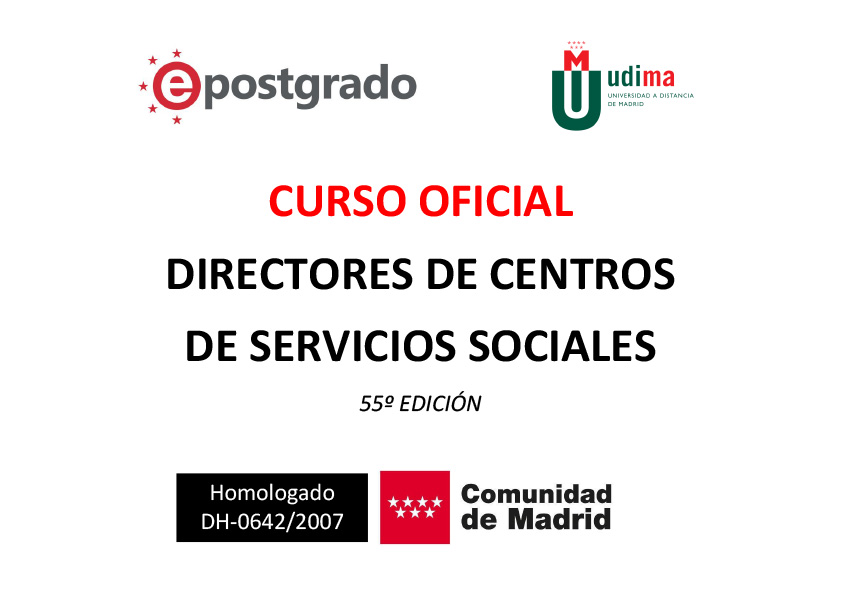 Curso Oficial de Directores de Centros de Servicios Sociales Homologado para el ejercicio profesional 300h. + Una Especialidad de 200h gratuita opcional*